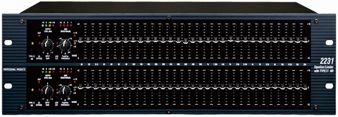 实况演出型双31段1/3倍频程图示均衡器。增益/衰减值可以选择为+/-6dB或+/-15dB。输入增益控制是一个41挡的步进式旋转电位器。设有EQ选择键,可以将EQ旁路。增加了低频切除滤波器。内置限幅器,阈值调校范围由0至+24dBu。4只LED显示输出电平— -10,0,+10和+18dBu。电子平衡/不平衡输入。输出为伺服平衡/不平衡。输入: